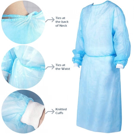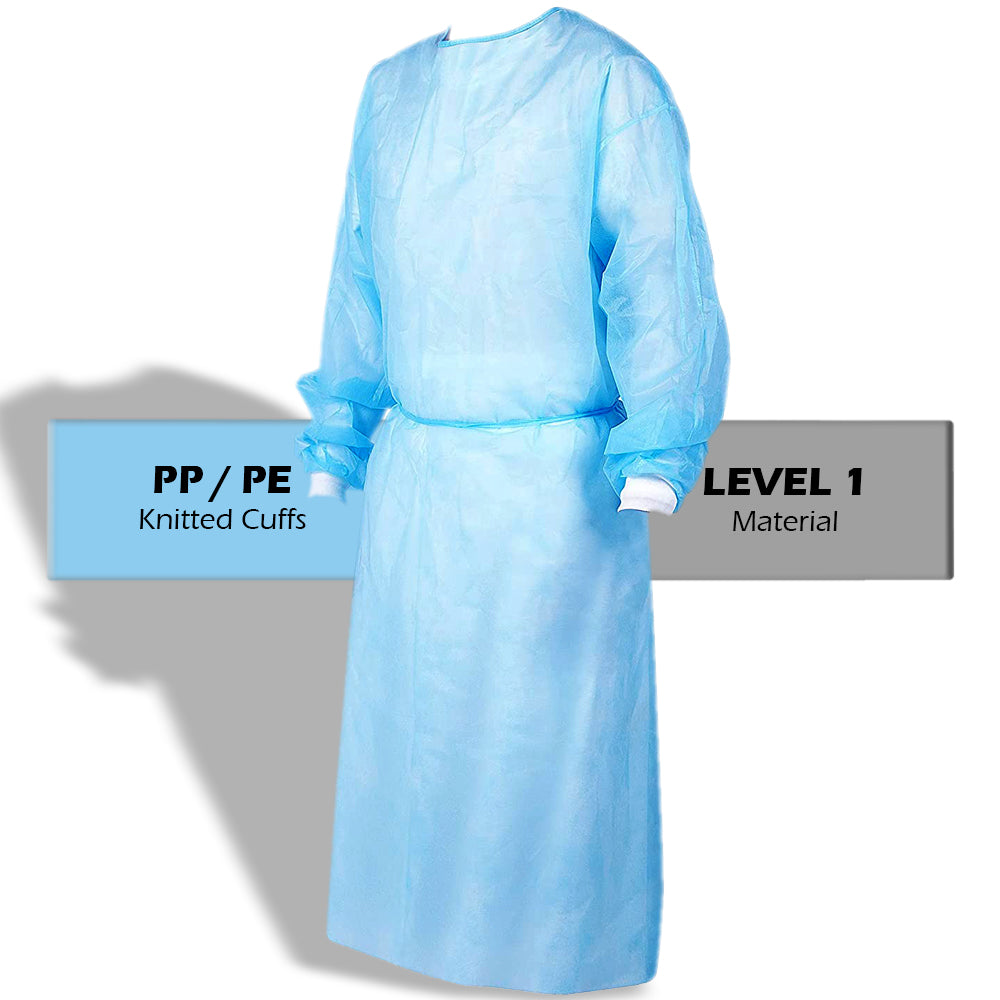 MasterMed PP/PE Clinical Blue Isolation Level 1 Medical Gowns Knitted Cuff & Tie Back TGA approved