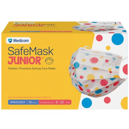 Medicom SafeMask Polka Dot Junior Kids Masks with Earloops Box of 50